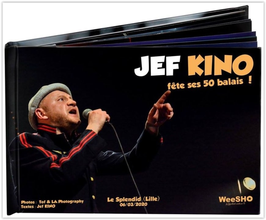 Ce WeeBOOK (Livre photo) original publié à l’occasion des 50 ans du chanteur et musicien Jef Kino regroupe les plus belles photos souvenirs de son spectacle au Splendid de Lille.