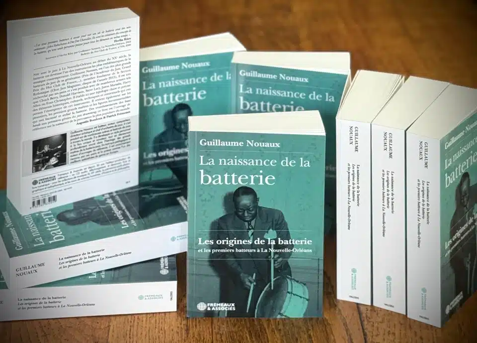 Allons enfants de la batterie… Batteur lui-même (et non des moindres), Guillaume Nouaux est déjà l’auteur de “Jazz Drums Legacy” chez 2Mc Éditions, et co-auteur des deux tomes de “La Section Rythmique” chez Frémeaux & Associés. Il nous livre cette fois le fruit de trois décennies de recherches aux sources louisianaises du jazz, et concomitamment, de celle de l’instrument qui en cristallisa les caractéristiques (et s’en avère en quelque sorte le produit dérivé). D’une rigueur et d’une exhaustivité impressionnantes, cet ouvrage ne manque toutefois pas du souffle épique sans lequel tout historien ne peut emporter l’adhésion du lecteur. Car ce que démontre ici Nouaux, par delà le recensement des origines complexes du jazz en terres créoles vers la fin du XIXème siècle, c’est en quoi l’accouchement sui generis d’un courant musical révolutionnaire préfigure autant qu’il l’accompagne un bouleversement technologique. Issu des brass bands itinérants typiques du folklore néo-orléanais (judicieusement dits marching bands), le “jass“, comme on le nommait à l’origine, est en quelque sorte la résultante d’une sédentarisation progressive de ses instrumentistes. En effet, dès lors que ces orchestres s’installaient dans des théâtres, cabarets et autres garden parties, la déambulation n’était plus de mise, et cette immobilisation favorisa l’évolution pragmatique des percussions. Certains joueurs de grosse caisse ambulants se mirent à imaginer des dispositifs permettant d’actionner simultanément leur instrument principal et la caisse claire (jusqu’alors dévolue à un tiers). Et en l’actionnant au pied, posée au sol, de libérer suffisamment le bras gauche pour lui permettre de jouer de cette dernière tout en se consacrant à d’autres accessoires. Si Jean-Sébastien Bach n’inventa certes pas l’orgue ni le clavecin, le jazz est indéniablement l’un des premiers courants musicaux modernes à avoir suscité autant d’innovations techniques. Ce ne sont pas les fabricants établis qui conçurent la batterie, mais bien une kyrielle de musiciens débrouillards, qui tels des Monsieur Bricolage au concours Lépine, élaborèrent, par tâtonnements successifs, des systèmes mécaniques permettant de développer cet instrument tel que nous le connaissons de nos jours… Pour nous conter ce processus, Guillaume Nouaux déploie sur près de 400 pages un panégyrique signalétique de plus de 200 batteurs locaux (pour la plupart méconnus ou oubliés), dont il met en exergue quelques figures parmi les plus emblématiques et significatives (notamment les historiques Baby Dodds et Zutty Singleton). À nos morts, la batterie reconnaissante!