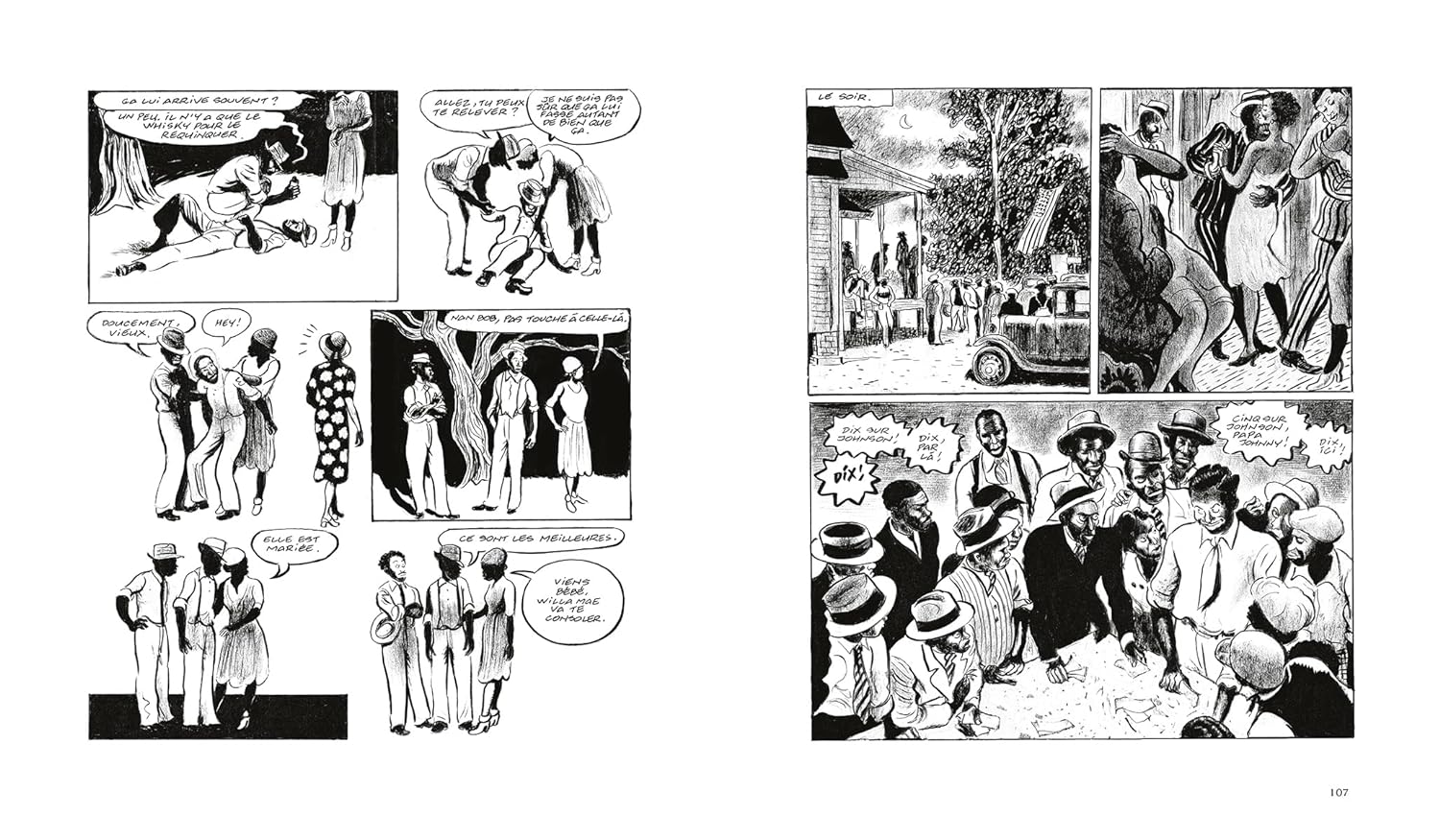 Frantz Duchazeau est né en 1971 à Angoulême, 3 ans avant le Festival de la bande dessinée dans la ville en question. Ce n’est certainement pas un hasard… Il a déjà un certain nombre d’oeuvres à son actif (P’tit Louis, Igor et les monstres, Les Vaincus, Le rêve de Météor Slim, Lomax, collecteurs de folk songs, et j’en passe…) et il est titulaire de nombreux prix (Prix des libraires de bande dessinée, Prix Saint-Michel de la meilleure bande dessinée francophone, Prix 2014 de la BD aux couleurs du blues par les associations Bulles de Mantes et Blues sur Seine pour son ouvrage Lomax, collecteurs de folk songs. Il a choisi, ici, de nous relater les derniers jours de Robert Johnson. Celui-ci est né le 8 mai 1911 à Huzlehurst, dans le Mississippi, et est décédé le 16 août 1938 à Greenwood, toujours dans le Mississippi. Son activité d’enregistrement a duré 7 mois, une session de 3 jours (23, 24 et 25 novemvre 1936 à San Antonio) et une autre de 2 jours (19 et 20 juin à Dallas, un an plus tard, en 1937). Il n’en demeure pas moins que ses 29 titres sont devenus de grands classiques repris par une multitude d’artistes! Avec Frantz Duchazeau l’occasion nous est donnée de marcher dans les pas de l’icône qu’est devenue Robert Johnson. Une BD hommage à l’auteur du titre devenu culte, “Sweet Home Chicago”.