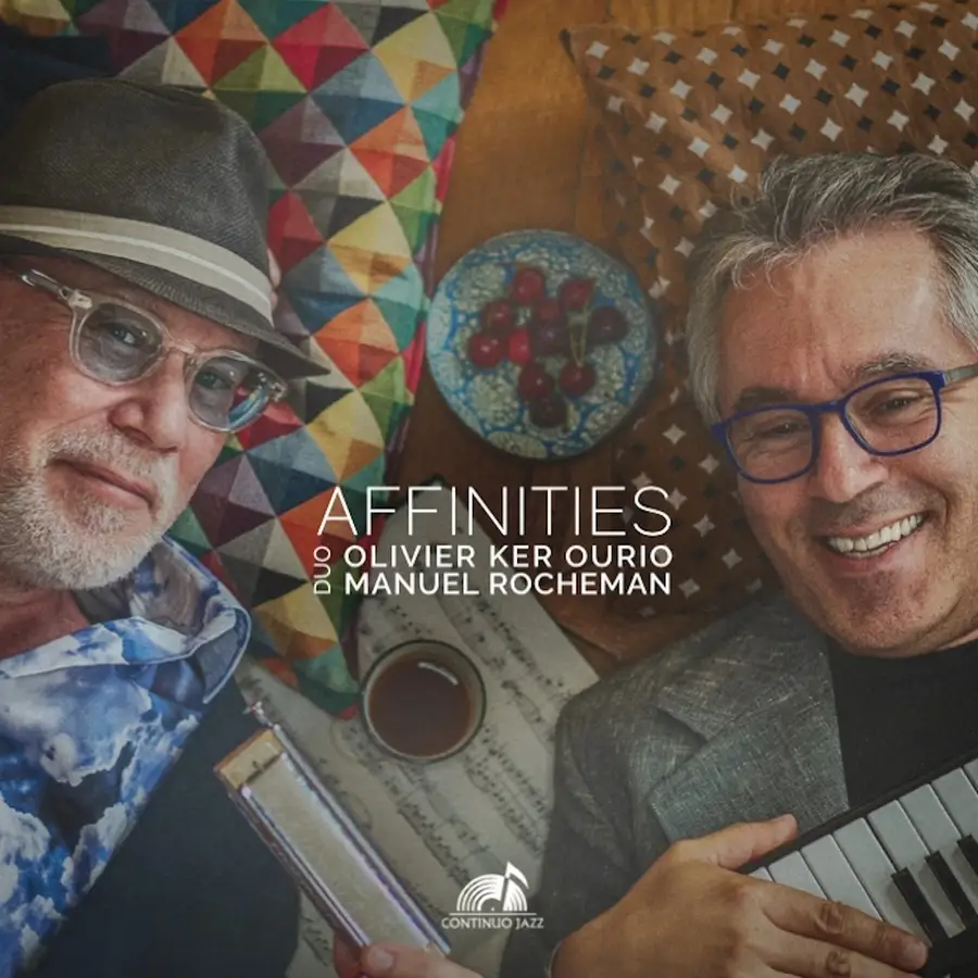 Le titre de l’opus, Affinities, caractérise parfaitement l’entente et la complicité qui lient les deux musiciens. Ils ont enregistré live quelques bandes au club Le Petit Duc d’Aix-en- Provence et d’autres au HOT CLUB DE LYON. On y retrouve des interprétations de Dave Brubeck, Michel Legrand, Wayne Shorter, Paul Simon, Henri Mancini et Serge Gainsbourg auxquelles on ajoute une composition de Manuel Rocheman, “Just Love” et une d’Olivier Ker Ourio, “Siroko” (déjà enregistrée en 2005). Dans ce duo, le premier est au piano tandis que le second joue des harmonicas Hohner. Olivier Ker Ourio a déjà une discographie abondante de plus de 10 albums tandis que Manuel Rocheman aligne plus de 20 opus en tant que leader, sideman ou soliste. Pour définir ce duo nous reprendrons l’apophtegme (parole mémorable ayant une valeur de maxime) du philosophe et écrivain roumain Emil Cioran: “Je crois que la musique est vraiment le seul art capable de créer une complicité profonde entre deux êtres”.