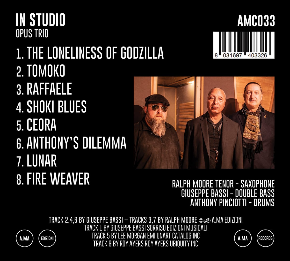 À l’origine conçu par le directeur de tournée Nico Scotti, Opus Trio met en vedette Ralph Moore, originaire de Brixton, au saxophone ténor (Horace Silver, Roy Haynes, Darrel Grant, Freddie Hubbard, Gene Harris), le batteur basé à New York Anthony Pinciotti (Pat Metheny, Hush Point, Jeremy Steig, Randy Brecker, Gary Bartz), et le bassiste Giuseppe Bassi, originaire des Pouilles, judicieusement nommé (Schema Quartet, La Banda degli Ornesti, Street Jazz Unit).