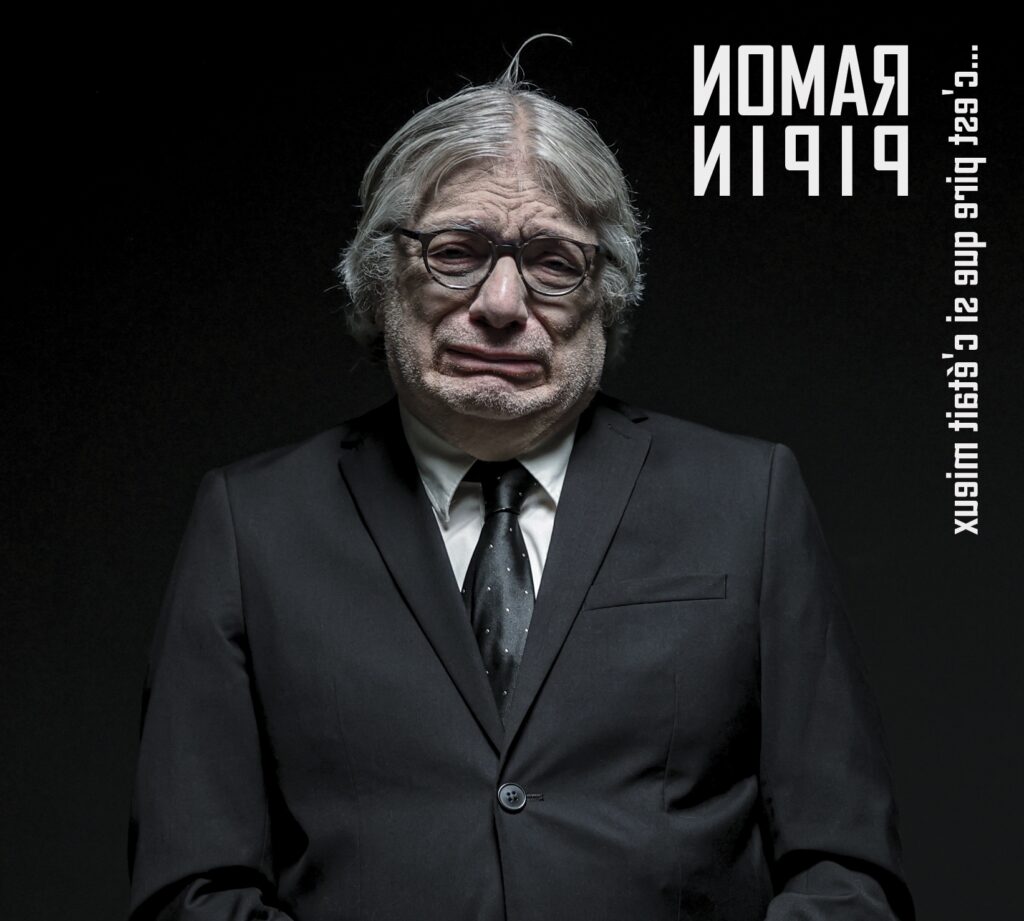 Pour son dix-huitième album à ce jour, le dénommé Alain Ranval (dit Ramon Pipin) n’a pas fait les choses à moitié. Et pour cause, puisqu’il se présente sous la forme d’un double EP seize titres. Plus d’un demi-siècle après Au Bonheur Des Dames (et quatre décennies après Odeurs), pas question de se calmer pour ce sémillant septuagénaire, et nulle nostalgie non plus. Ce diptyque prétend en effet proposer un CD “gai et optimiste” (C’est Mieux Que Si C’Était Pire) et un autre plus sombre (C’est Pire Que Si C’Était Mieux), mais comme toujours avec l’intéressé, tout baigne dans la même loufoquerie méticuleuse, sans laquelle la plupart de ses zélateurs ne s’y retrouveraient pas. C’est sur un entrelacs de sons industriels et numériques que s’engage la plage titulaire, selon une signature sonore guère éloignée du “No Sex” d’Odeurs en 80 (mâtinée de XTC, de musique égyptienne et de Talking Heads), et son propos exsude bien sûr un second degré anxiogène. Avec son riff au clavier basse synthétique, le funky “Budapest” perpétue ce sempiternel humour potache nourri de jeux de mots et d’allitérations, avant que, pastichant conjointement le “All Right Now” de Free et “Viens Avec Nous” de Triangle (formation contemporaine des débuts d’ABDD), “Est-Ce Que Tu Sais” dégoise son lot d’insanités, à peine interrompu par deux soli d’harmo torrides de Rachelle Plas, et un autre des six cordes électriques de Brice Delage. Parodiant Depeche Mode, OMD et Kraftwerk, “Intérieur Queer” et “Les Chiffons” dévident un disco-beat robotique sur arrangement numérique minimaliste (mention spéciale au break “Smoke On The Water” pour clavier Casio sur le second). Les comptines “Trois Physiciens Dans Une Voiture” et “Mort Devant La Télé” n’auraient pas déparé non plus sur “Toujours Plus Haut” (dans la veine de “Oh, Les Beaux Dimanches”), tout comme “Soyez Gentil Avec Mme Kaplan” (qui recèle la vanne téléphonée “son concubin venait de La Havane“), tandis que le pastoral “Le Silence” se trouve télescopé par un final metal estampillé Hellfest. Complainte des acouphènes, “Crash, Boom, Bang” précède “L’Ami À Louer” (fructifiant sur nos ultra-modernes solitudes, avec un solo de guitare sidérant de Jean-Michel Kajdan), ainsi que le tube potentiel “Les Gens Simples”, le menuet “Les Mots Doux” (entre William Sheller et Gotainer) et le poignant “Pitchipoï” (en duo avec Inès Damaris), dont la gravité escamote pour une fois toute velléité de gaudriole. Ramon ne peut néanmoins manquer de conclure sur deux calembours bien pesés: “On Va Tout Scanner” et “Mon ami Pierre n’a pas fermé l’œil de la nuit. Il a pas de pot, Pierre“. Comme le chantaient déjà Odeurs, “On a été féconds“… Que voulez-vous, on ne se refait pas, mais quand on se surnomme Pipin, rien n’empêche non plus de continuer!