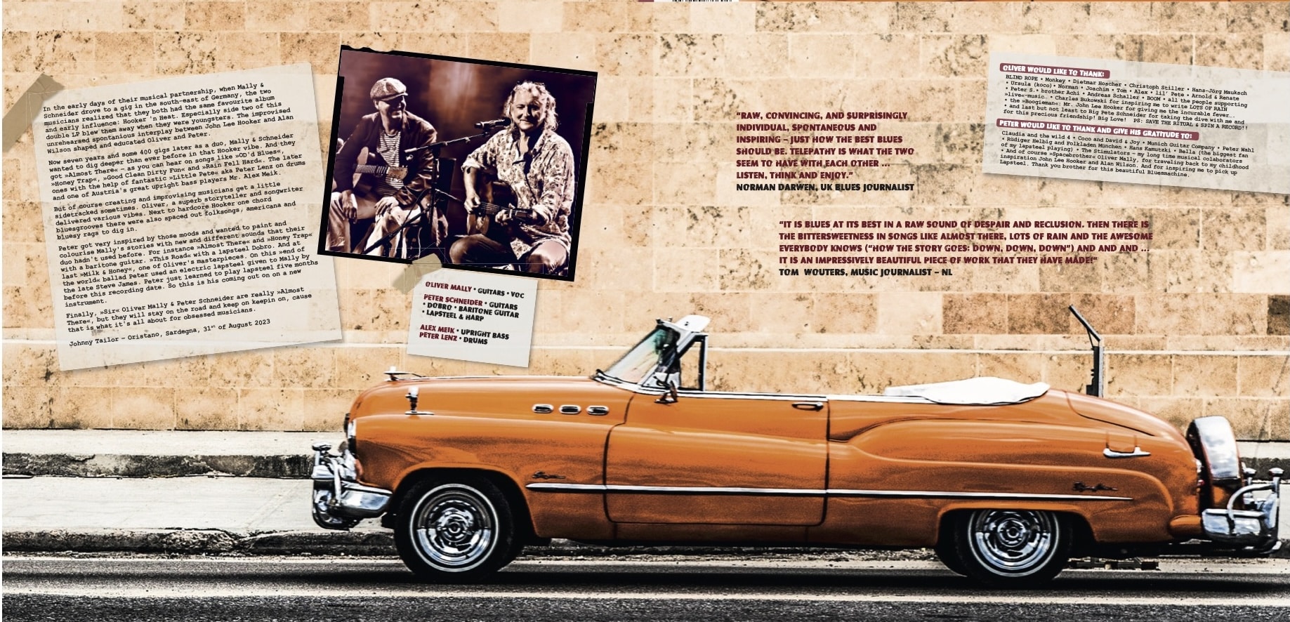 ‘Almost there’, un album superbe, un album aux teintes sépias (à l’instar de la couleur de la pochette du vinyle) dans la lignée des précédents opus de ‘Sir’ Oliver Mally. Réellement ‘indispensable’, même si on aurait follement aimé que le duo nous propose un peu plus que neuf titres sur ce vinyle, tant c’est excellent. Cet album mérite non seulement le respect mais le droit de figurer à côté de ceux des légendes du blues: un disque remarquable, sur le fond comme sur la forme, un disque hommage à un blues d’une époque aujourd’hui révolue. Ecouter ‘Sir’ Oliver Mally et Peter Schneider, c’est regarder le ciel de la New Orleans, la nuit, en traversant les champs de coton. Un album émouvant et souriant à la fois, indispensable!