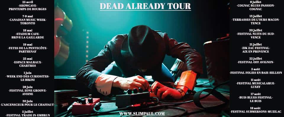 Cela faisait déjà un bon moment que nous ne remettions pas en cause les capacités de Slim Paul à chanter le Blues. Et cela pour plusieurs raisons: il n’en est, tout d’abord, pas à son coup d’essai. Trois EPs sous son seul nom, “Weep N Moan Sessions”, en 2012, “Weep N Moan Sessions II”, en 2014, et “No Yet Man”, en 2017. Et puis Slim Paul a chanté et insufflé un soupçon de Blues non négligeable au sein de Scarecrow (5 albums à leur actif, en 2011, 2013, 2014, 2015 et 2016) qui demeure l’un des fleurons du Blues hexagonal, formation qu’il a cependant quittée pour se consacrer à une carrière solo. La première parution de cette aventure de Slim Paul en solo sort actuellement et est dans les bacs depuis le 13 avril. Un événement à marquer d’une pierre blanche, tant le résultat proposé est de taille et de qualité, avec ces 12 compositions qu’il ramène de son périple aux Etats-Unis. Pour réaliser ce “Dead Already”, Slim Paul s’est entouré de deux compagnons de route, et les trois musiciens nous offrent ici une véritable pépite bleue sur laquelle il n’y a rien à jeter. Jamo est à la batterie, Manu à la basse, et Slim Paul au chant et à la guitare… qu’il maîtrise parfaitement, et avec une facilité innée qui aura de quoi coller des moments de découragement à ceux qui triment à maîtriser une six cordes. Après quelques concerts en France, il part d’ailleurs à Toronto, Berlin et New York, montrer qu’il existe des frenchies qui ont compris ce qu’est le Blues!