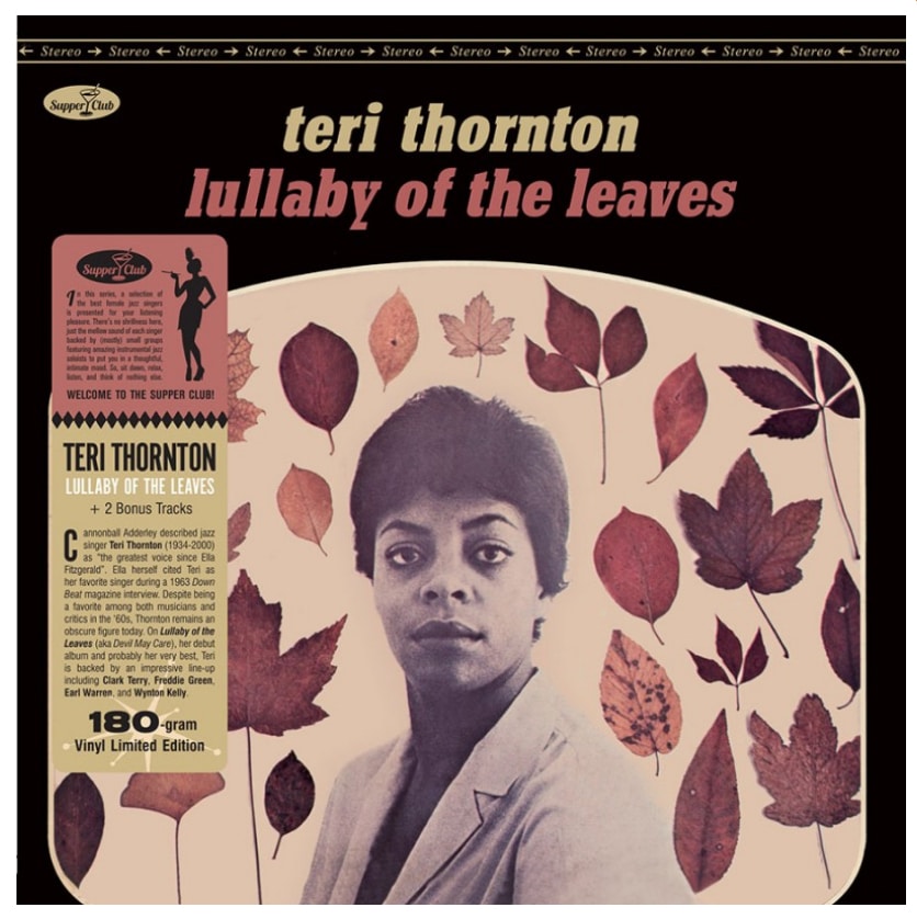 Cannonball Adderley a décrit Teri Thornton (1934-2000) comme étant “la plus grande voix depuis Ella Fitzgerald”. Ella elle-même a cité Teri comme comme sa chanteuse favorite, lors d’un entretien avec le magazine Down Beat en 1963. Bien qu’elle fut la préférée parmi les musiciens et les critiques des années 60, Thornton demeure encore une figure obscure de nos jours. Sur “Lullaby of the Leaves (aka Devil May Care)”, son premier album (et probablement son meilleur), Teri est accompagnée par une impressionnante formation, comprenant Clark Terry, Freddie Green, Earl Warren et Wynton Kelly.