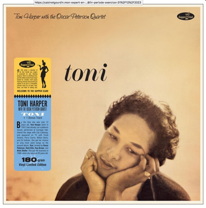 Alors qu’elle n’avait que 12 ans Toni Harper, née en 1937, avait déjà enregistré un disque de platine, joué au Carnegie Hall, partagé la scène avec Cab Calloway, et était apparue à la télévision avec Frank Sinatra, Perry Como, Milton Berle, et Ed Sullivan. Ayant eu l’occasion de chanter des chansons plus matures sur le présent album, Toni, y est soutenue par Oscar Peterson, Herb Ellis, Ray Brown et Alvin Stoller. Elle a hélas quitté le métier en 1966, alors qu’elle n’avait que 29 ans.