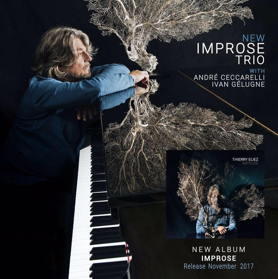 Reprenez la lecture de toutes ces lignes et vous aurez du mal à comprendre pourquoi vous ne connaissez pas encore Thierry ELIEZ. Mais le bonhomme est d’une telle discrétion que vous en serez excusé de suite, car Thierry est plutôt du genre à apprécier l’ombre des étoiles qu’il accompagne. Mais le talent du personnage est tel qu’un beau jour il était de son devoir de se montrer à son tour en pleine lumière. Et voici donc qu’après 35 ans de carrière en tant que sideman et plus de 50 interventions musicales auprès d’autres musiciens sur leurs albums respectifs, Thierry ELIEZ (retenez bien ce nom…!) se décide enfin à publier le sien. Nous sommes alors en 2017 et il sort alors son album solo “Improse”, mais le génie créatif le démangeant sans cesse, il décide ensuite très rapidement de se lancer dans de nouvelles extensions de ce premier opus, et le voici qui convoque pour cela deux autres musiciens. Il passe du dialogue seul à seul avec l’instrument à un dialogue à trois, avec deux autres musiciens. Sur ce nouvel album Thierry ELIEZ est donc au piano, Ivan Gélugne à la contrebasse et André Ceccarelli à la batterie. Thierry a composé 7 morceaux et il reprend “Circum” de Cellin Poggi ainsi que “Rêverie” de Claude Debussy. Amoureux du travail bien fait et façonné comme un bijou, c’est également lui qui a arrangé l’ensemble. Autre réussite magistrale de cet album, il permet la rencontre de trois musiciens de trois générations différentes qui se retrouvent et s’épanouissent aussi bien dans l’abstraction que dans la poésie figurative. Magique, majestueux et divin à la fois. Un album qui se classe parmi les indispensables de ce début 2019!
