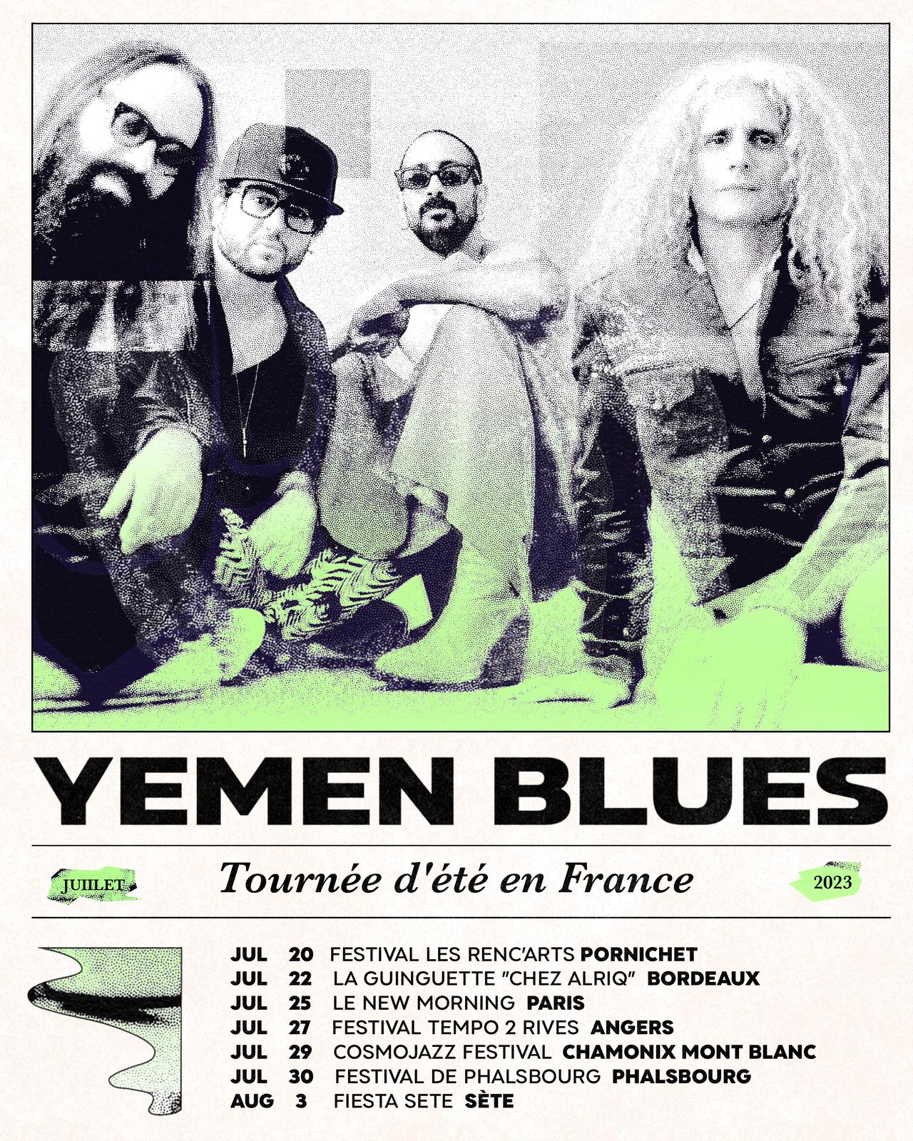La formation est néée en 2010 à l’initiative du chanteur multi-instrumentiste compositeur israélien d’origine yéménite Ravid Kahalani naviguant entre Tel Aviv er Helsinki. A la croisée du blues, du funk et du rock, la musique du groupe est teintée des différentes influences du Moyen Orient. L’intemporalité des grooves ancestraux est manifeste dans cette musique qui oscille entre la musique noire américaine, les vibrations du désert saharien, les musiques nubiennes, gnawi, touareg, saidi et bambara. Ils ont habitude de tourner aux Etats Unis, en Europe et dans le monde arabe. L’origine de leur nom et de leur musique vient de la force qu’elle puise dans la culture du Yémen, carrefour du Monde arabe, de l’Afrique de l’Est et des cultures juives. Une culture réconciliant le savant, le populaire et les expériences mystiques. En connectant ces transes séculaires et essentielles avec les énergies du blues, du funk et du rock, on obtient donc la musique de YEMEN BLUES. Il faut dire que Ravid a toujours eu l’opportunité de bien s’entourer. D’abord avec le compositeur Omer Avital, directeur musical du premier album éponyme sorti en 2011, puis avec le bassiste et oudiste Shanir Blumenkranz de la galaxie Tzadik, John Zorn, Yo-Yo Ma (Projet Silk Road), avec la sortie de l’album Insaniya, en 2015, réalisé par Bill Laswell, producteur de Herbie Hancock, George Clinton, Touré Kunda, et qui contient un duo avec Oxmo Puccino. Dans le cas présent, le mix a été réalisé par le producteur Tamir Muskat (co-fondateur du Balkan Beat Box et producteur d’Asaf Avidan, Gogol Bordello, A-WA et Ester Rada), et c’est magistral. Le projet de Shabazi était de mettre en musique du XXIème siècle les plus beaux textes du poète yéménite du XVIIème siècle Shalem Shabazi. Réconciliation entre la culture séculaire du leader et sa capacité à la projeter dans les clubs branchés de New York, Paris, Tanger et Tel Aviv…