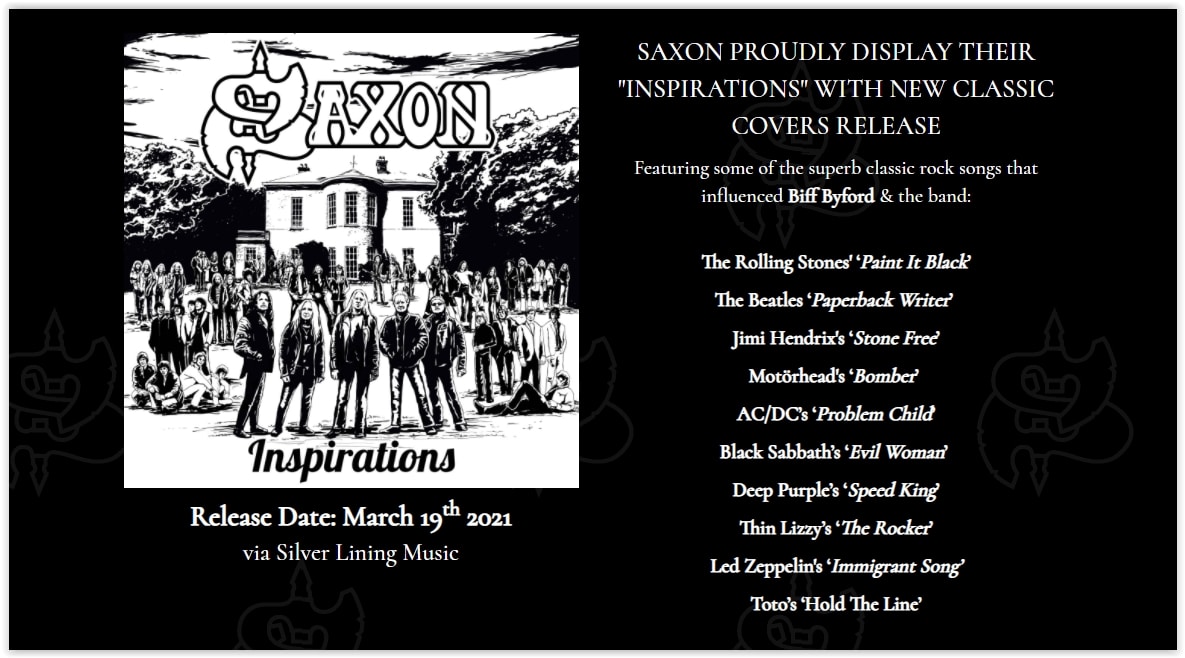 Set for release on March 19th 2021, via Silver Lining Music, Inspirations gets things rolling with the release of Saxon’s crunching take on The Rolling Stones’ ‘Paint It Black’.