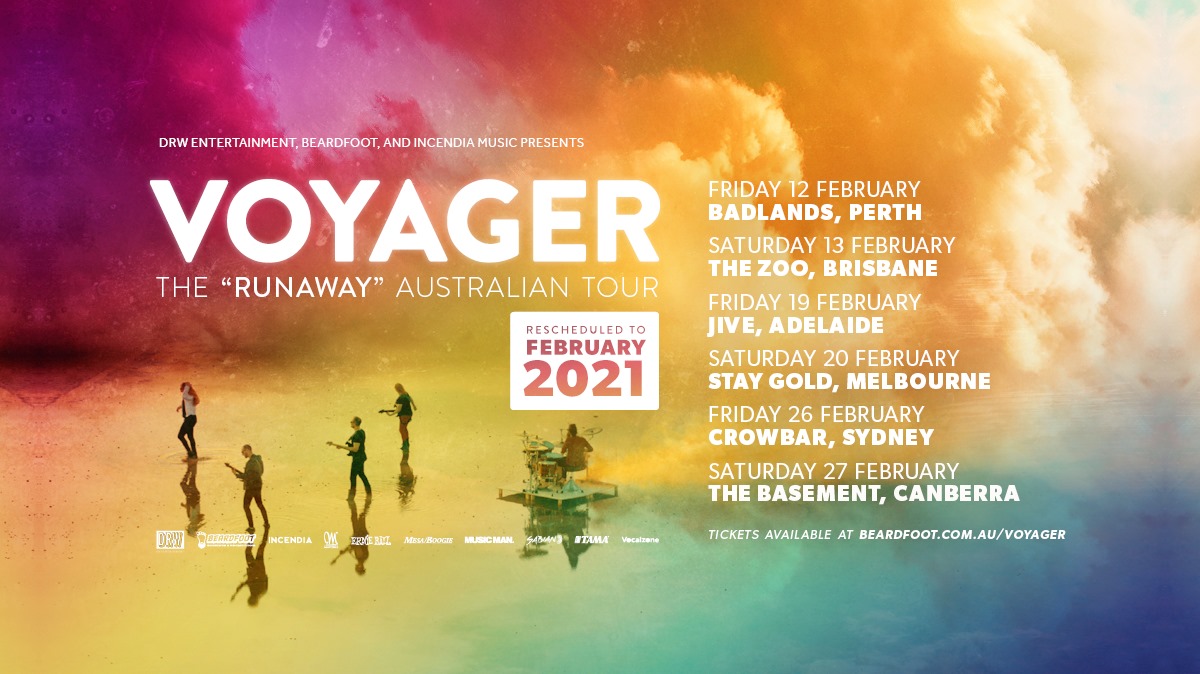 Vocalist Danny comments on the tour: “You know what helps build something more than waiting? Waiting some more! So just as we were super excited to tour “Colours in the Sun” around Australia in May 2020, we are going to be at least twice as excited to bring it to you in 2021. We are going to be raring to burn off those isolation pounds on stage and bring you a smorgasbord of pent up Voyagerisms; more than ever, live music will have a whole new meaning and I can’t wait to see everyone’s smiles, some new 80s hairdos and some inflatable keytars – Runaway until 2021 Australia, see you soon(ish).”